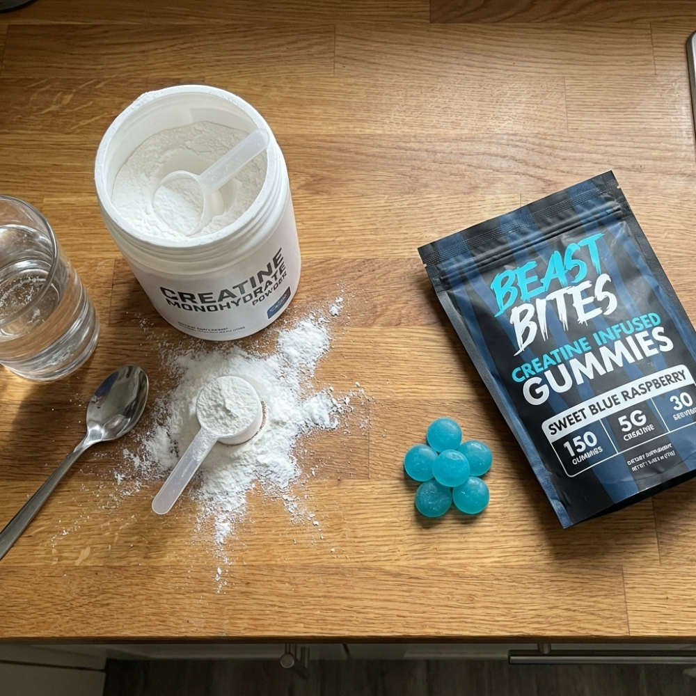 La creatina en polvo casi nunca se disuelve por completo. Siempre terminas tomando un fondo de agua que sabe a gis o desperdiciando producto que se queda pegado en el vaso. Con Beast Bites, cada bocado es suave, delicioso y sin texturas rasposas.