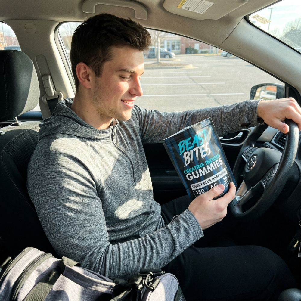 "Mi mochila del gimnasio siempre terminaba manchada de polvo blanco que se salía del termo o del bote. Desde que cambié a Beast Bites mi vida es más limpia. Cierro la bolsita hermética, la guardo y cero desastres. Además, el sabor mora azul es el mejor."